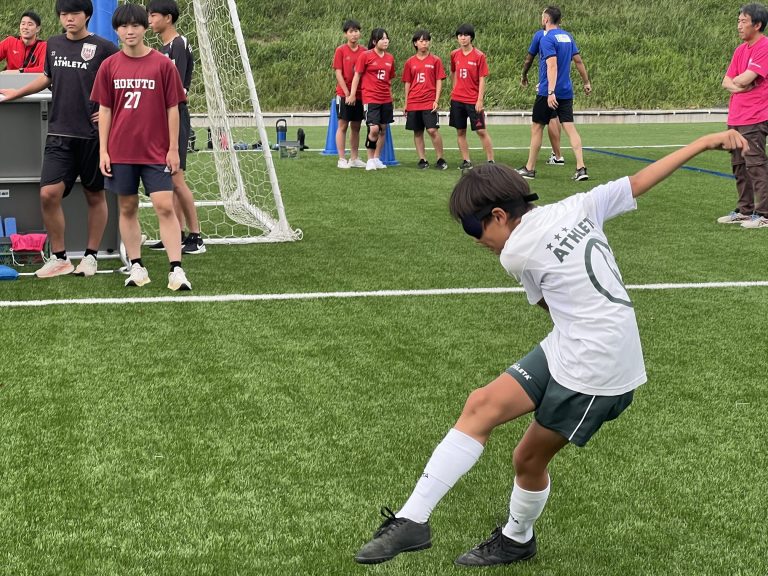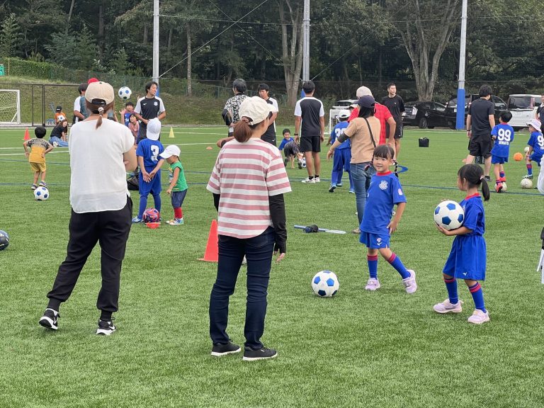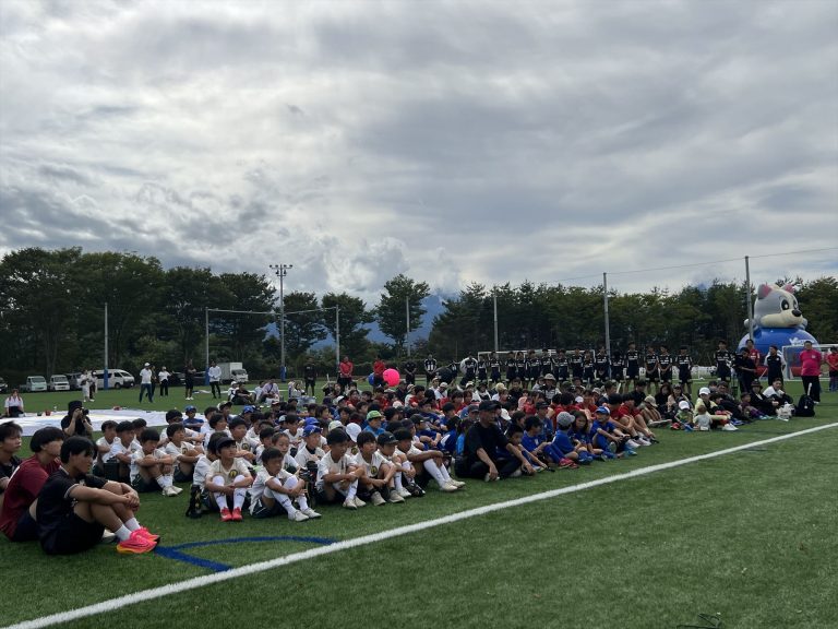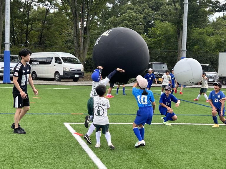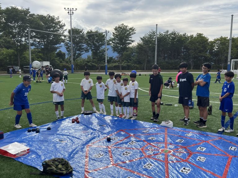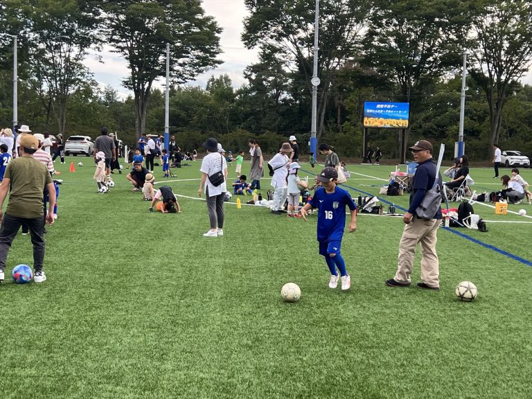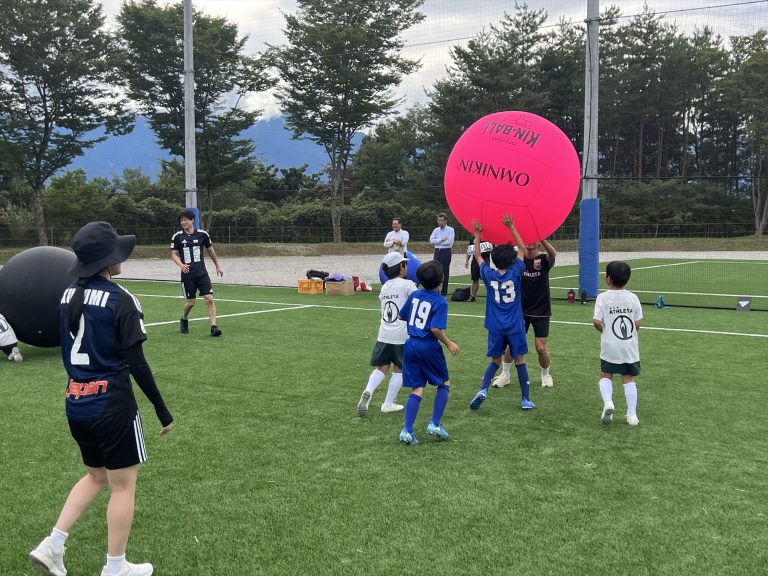 また、サッカーに加えて、ブラインドサッカー、大きなボールを使って楽しむ「キンボール」、ボッチャなど多様なスポーツが体験でき、キッズフェスティバルでは小さな子どもたちがヴァンフォーレ甲府の外国籍選手と共にサッカーを楽しむ姿が見られました。